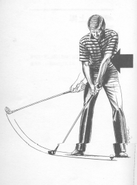 瞄球時單用左手握桿,手背和手腕要保持伸直而往後移,轉動球桿使握把的未端指向目標,並將手腕往上曲起。現在想像有一股力量推動左手肘輕鬆上桿;直到左手越過右腳之後,身體才開始轉動。