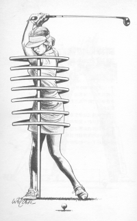 如果你傾向於過度緊張,那麼可能要費很大一番功夫而又不易降低緊張的程度,我有一位學生按著這個方法練球,結果她很快就學會以較輕鬆的方式揮桿,而且開球的距離平均增加了二十碼。 Top