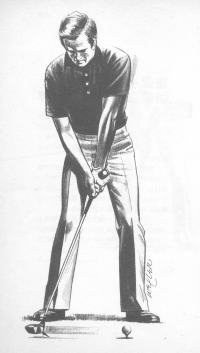 你也犯有在上桿時將桿頭提起的通病嗎?這通常是因為右手太過緊張所引起的。理想的開始動作是將桿頭慢慢地沿著地面揮離球,然後沿著目標線內上桿。為了促成正確的上桿動作,我告訴學生們在球的後方大約十五到十八英吋之處插一個tee。當學生感覺到桿頭敲到tee時,他就知道他已做出正確的上桿動作了。 Top